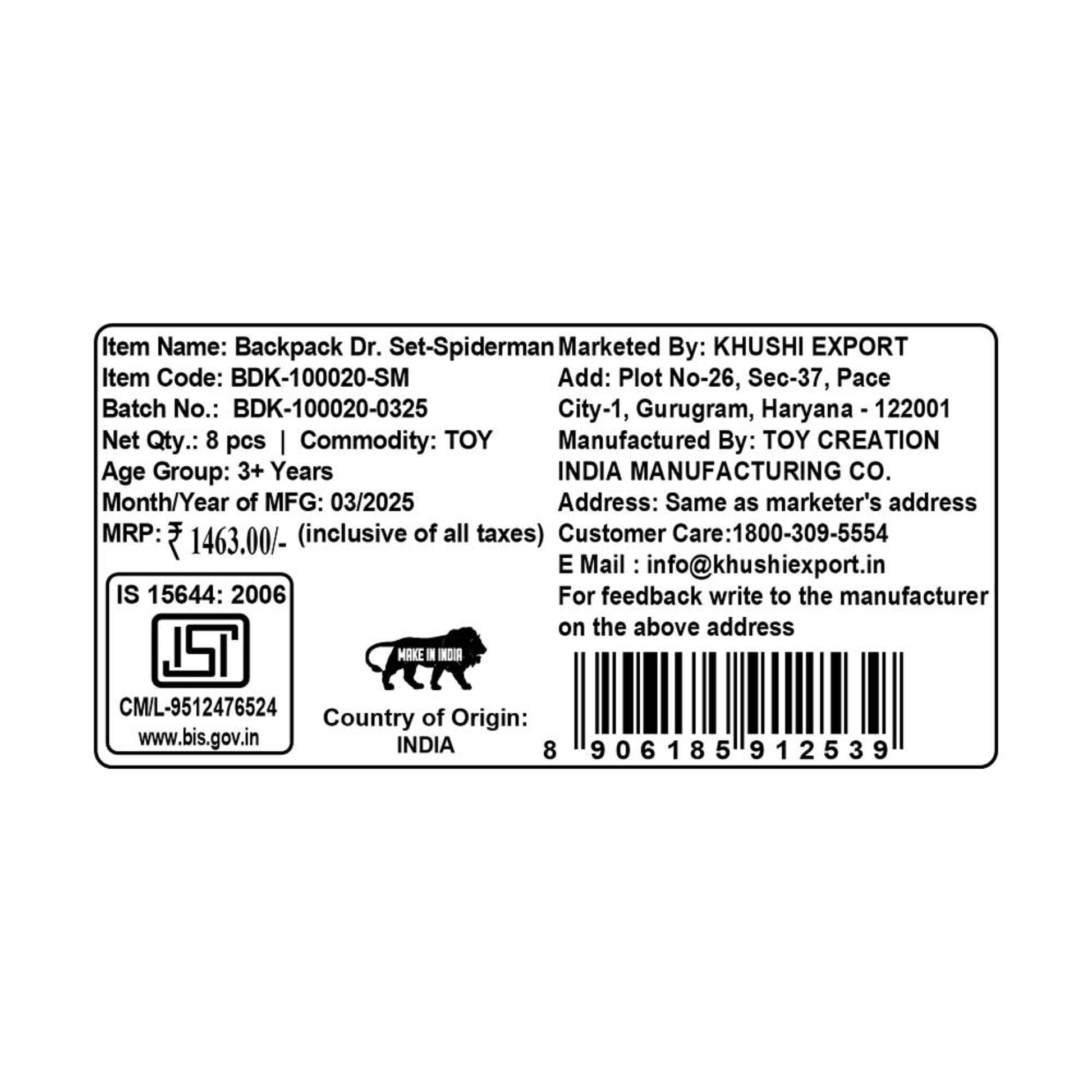 Kriiddaank BackpackDr.Set-SpidermanThemeBDK-100020ByMarvelKids Superhero Medical KitToddler Doctor ToyPretend Play Medical KitSuperhero Role Play SetBest Gifts for Kids