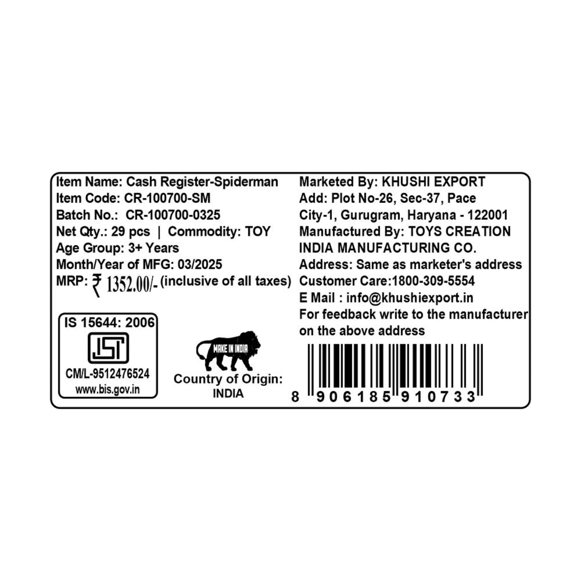 Kriiddaank CashRegister-SpidermanThemeCR-100700ByMarvelMarvel Spider-Man Toy Cash RegisterKriiddaank Kids Cash Register ToySpider-Man Cashier Toy with AccessoriesSpider-Man Cash Register Set for Boys & GirlsSpider-Man Cashier Toy with Accessories