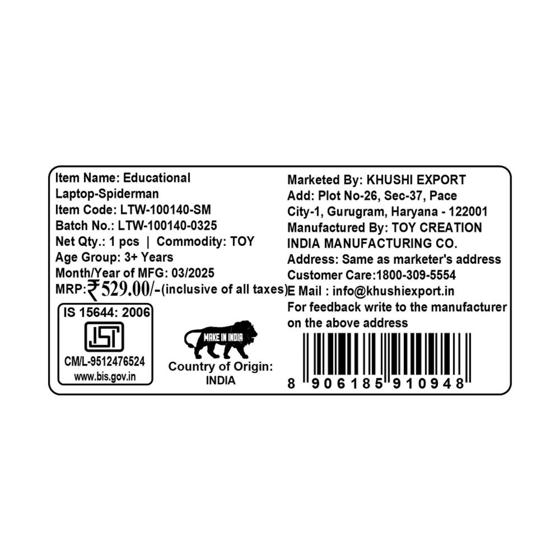 Kriiddaank Educational Laptop LTW SpidermanSpider-Man learning toy for kidsMarvel Spider-Man toysDisney Spider-Man-themed educational toysMarvel Spider-Man kids laptopDisney Spider-Man-themed educational toys