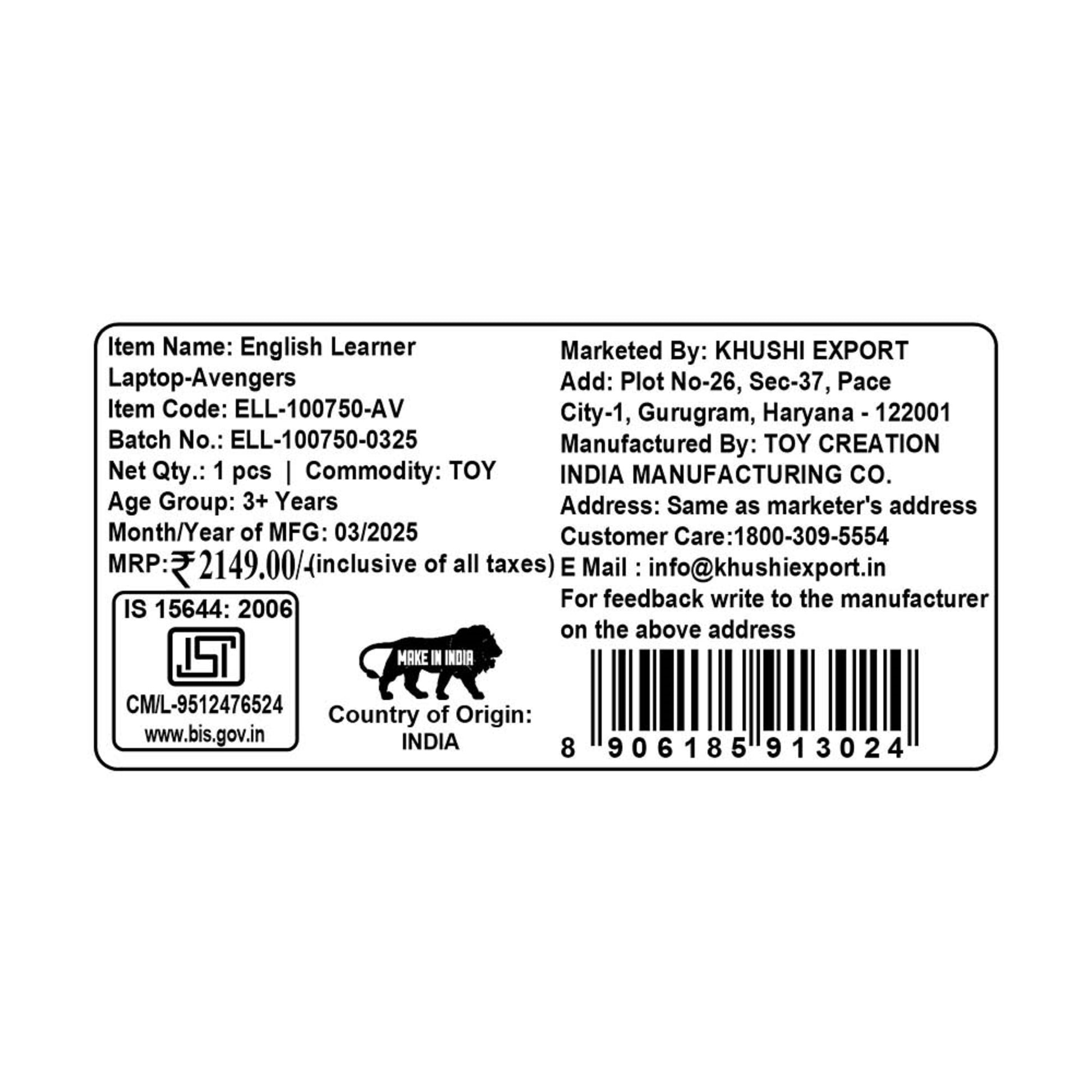 Kriiddaank EnglishLearningLaptop-Avengers-100750ByDisneyKids Learning Laptop ToyToddler Learning Laptop with GamesPortable Kids Learning ComputerPretend Play Laptop for ToddlersDisney Avengers Kids Laptop