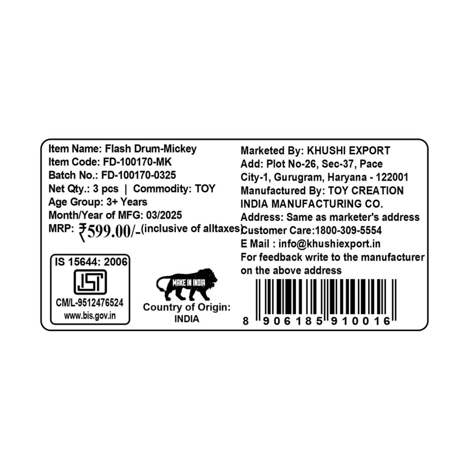 Kriiddaank Flash Drum MickeyFlash Drum Mickey toy Flash Drum musical toy for young childrenMickey Drum for toddlerDrum with sticksAction drum toys