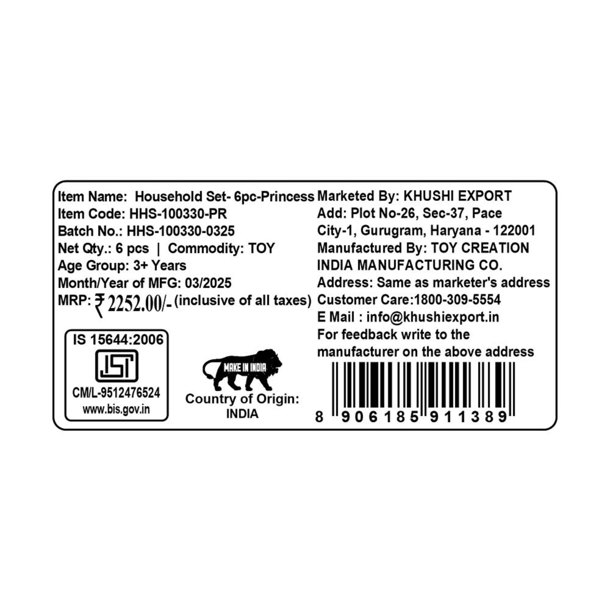 Kriiddaank HouseholdSet(6pc)-PrincessThemeHHS-100330ByDisneyRole Play Household SetPrincess Household Toy CollectionPrincess Home PlaysetPrincess Theme 6-Piece SetDisney Princess Household Set