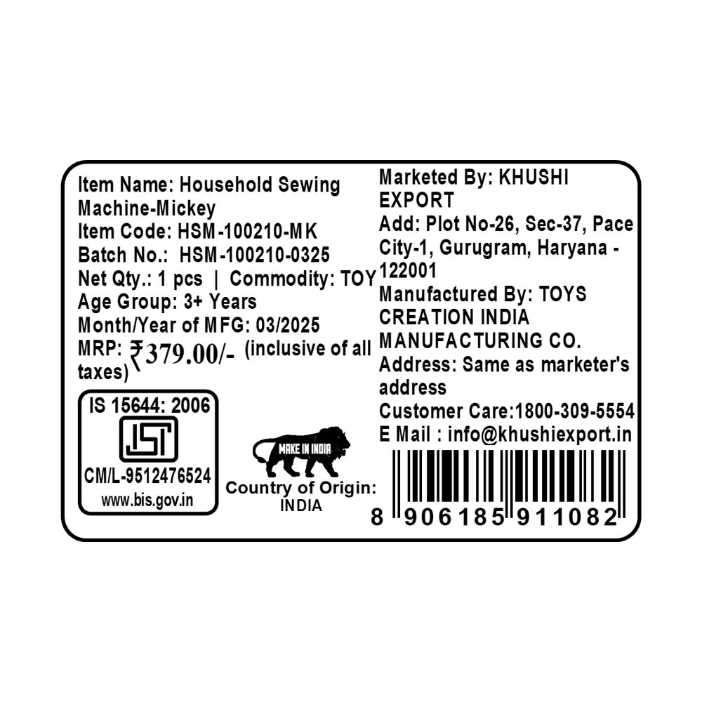 Kriiddaank HouseholdSewingMachine-MickeyThemeHSM-100210ByDisneyToy Sewing Machine with Interactive Buttons Toy Sewing Machine for KidsImaginative Play for KidsInteractive Sewing Machine for Early ChildhoodToy Sewing Machine for Toddlers with Sound