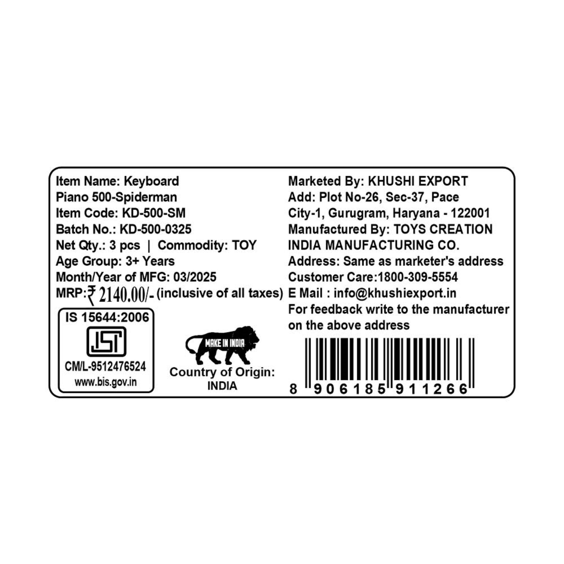 Kriiddaank Keyboard Piano 500 SpidermanBattery-Operated Keyboard PianoPortable piano keyboard for childrenKids Musical KeyboardEducational keyboard piano for toddlersPortable piano keyboard for children