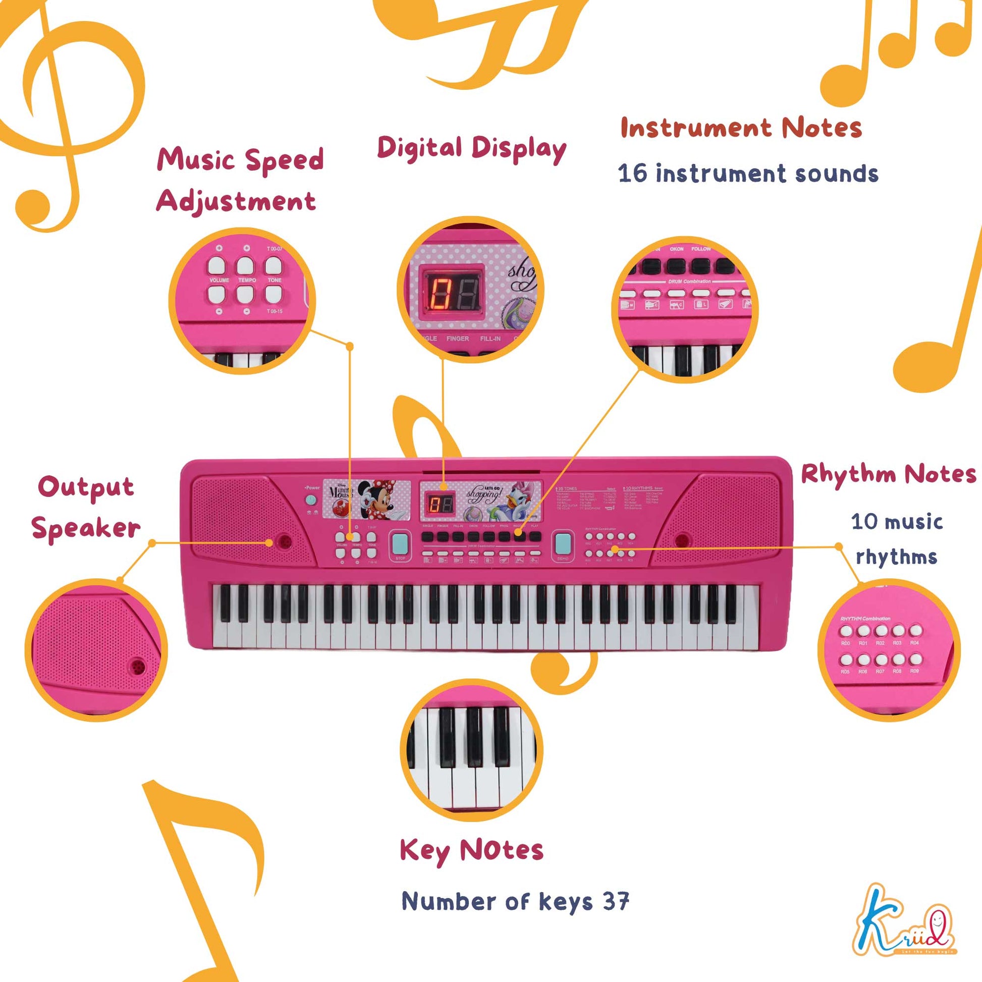 Kriiddaank Keyboard Piano -600 MinnieMinnie Themed ToysElectronic keyboard piano with USBKids Musical KeyboardLearning & Development Toy for ToddlersEducational keyboard piano for toddlers