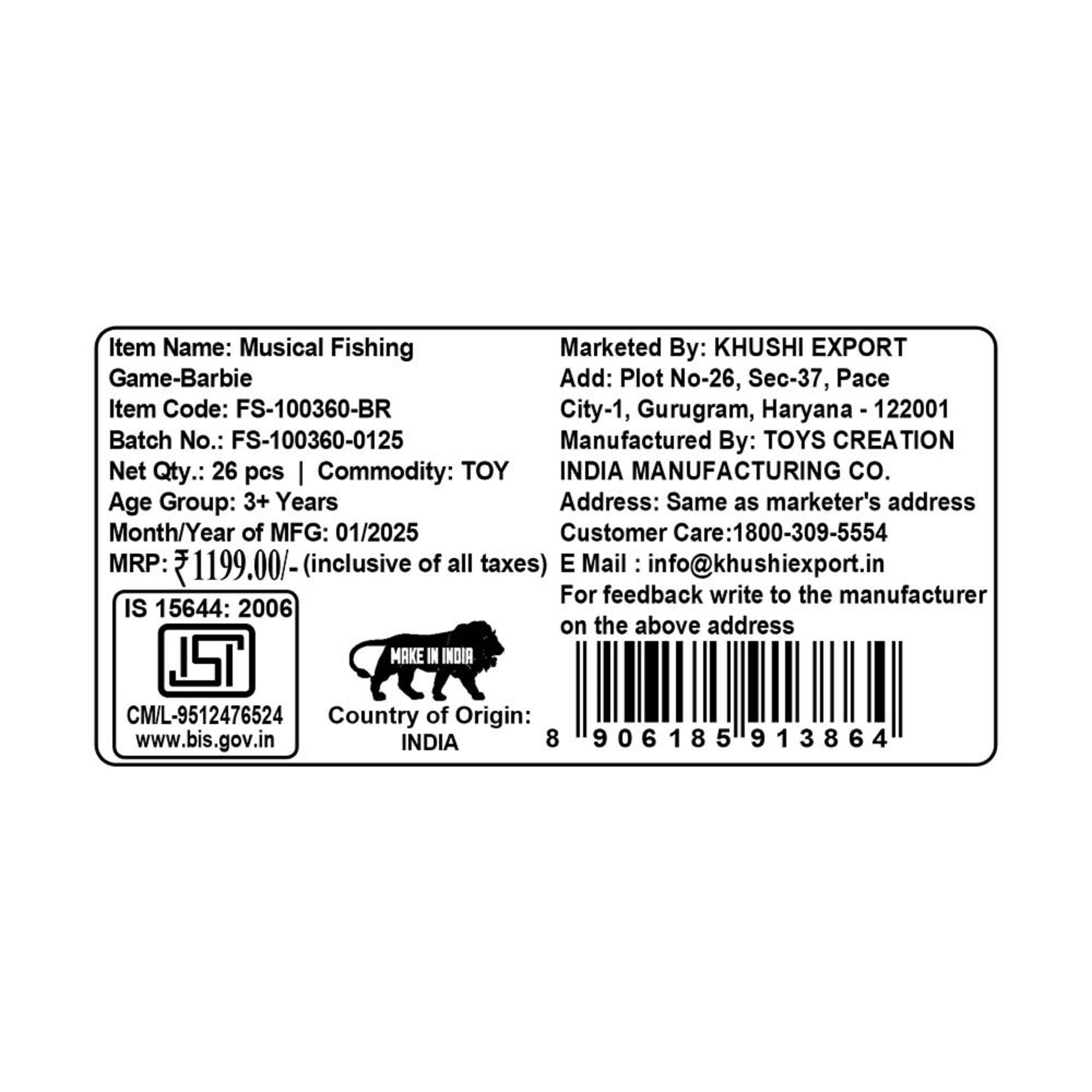 Kriiddaank Musical Fishing Game- BarbieElectronic Fishing Toy barbieChildren’s GameInteractive ToyFun Learning ToyOcean Theme Toy