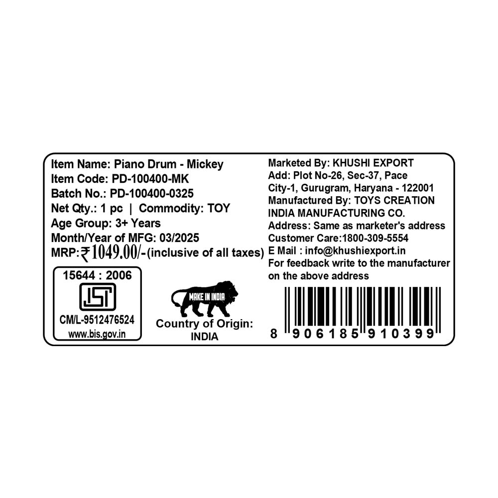 Kriiddaank Piano Drum MickeyMini piano drum playset for toddlersInteractive drum and piano toy with lightsElectronic drum and piano keyboard toyKids’ piano drum musical toyMusical Toy