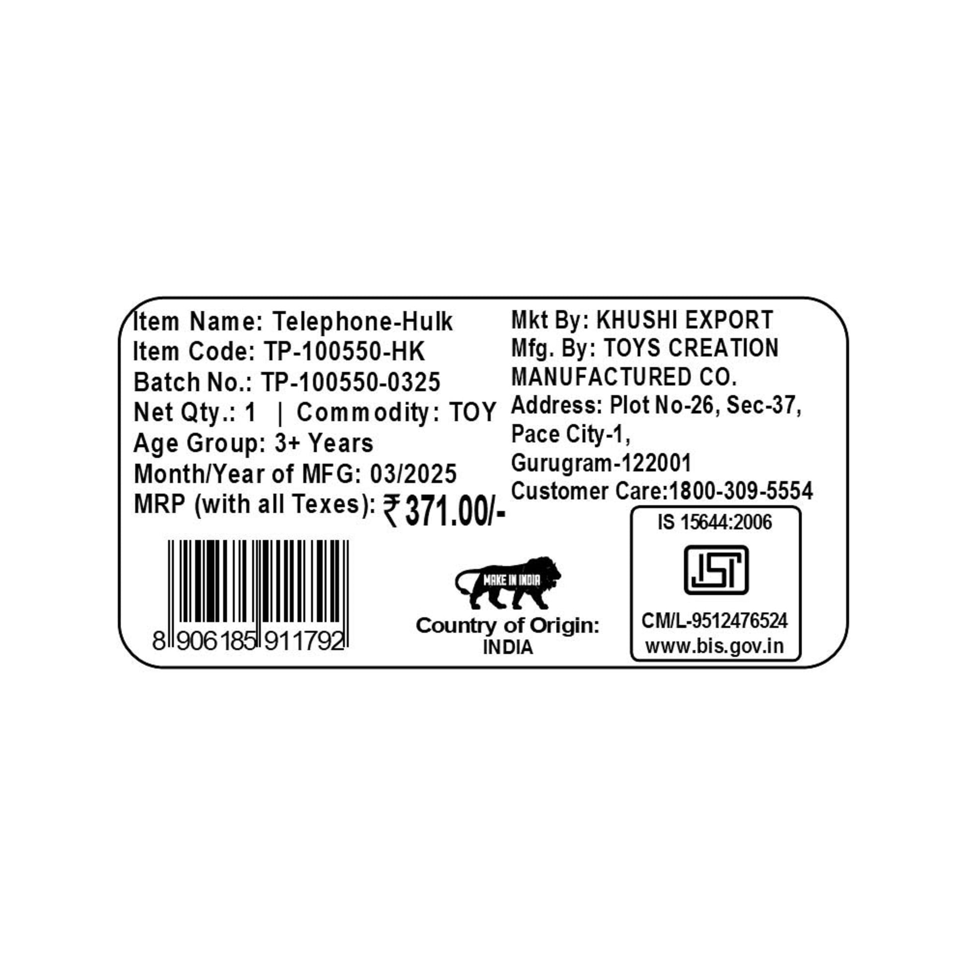 Kriiddaank Telephone-HulkThemeTP-100550ByMarvelHulk-Themed Toy TelephoneHulk Talking Toy PhoneMarvel Superhero Kids PhoneFun Hulk Toy for ToddlersHulk Play Phone with Sound Effects