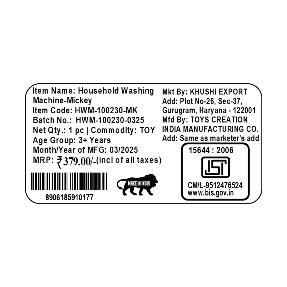 Kriiddaank WashingMachine-MickeyThemeHWM-100230ByDisneyMickey Toy Washing MachineLight & Sound Washing Machine ToyPretend Play Home Appliance ToyLight & Sound Washing Machine ToyInteractive Home Appliance Toy for Toddlers